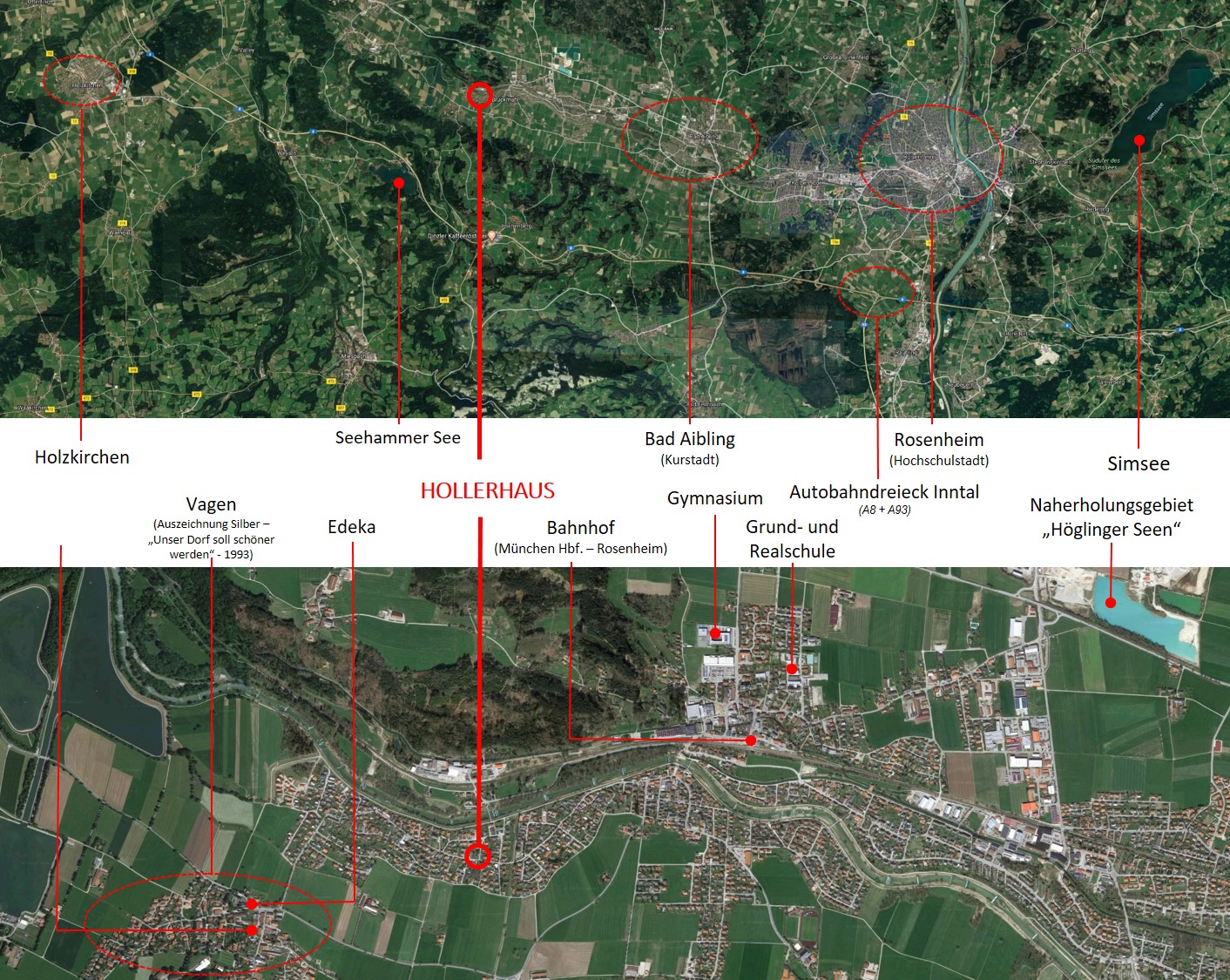 Familien- und Arbeitsleben lassen sich optimal vereinen: Zügig mit Auto oder dem Meridian in München, Rosenheim oder Salzburg, im Alltag hingegen problemlos zu Fuß oder mit dem Fahrrad unterwegs. So trifft das Bauprojekt HOLLERHAUS den Nerv der Zeit und überzeugt mit seiner Kombination aus Infrastruktur und Lebensqualität.
