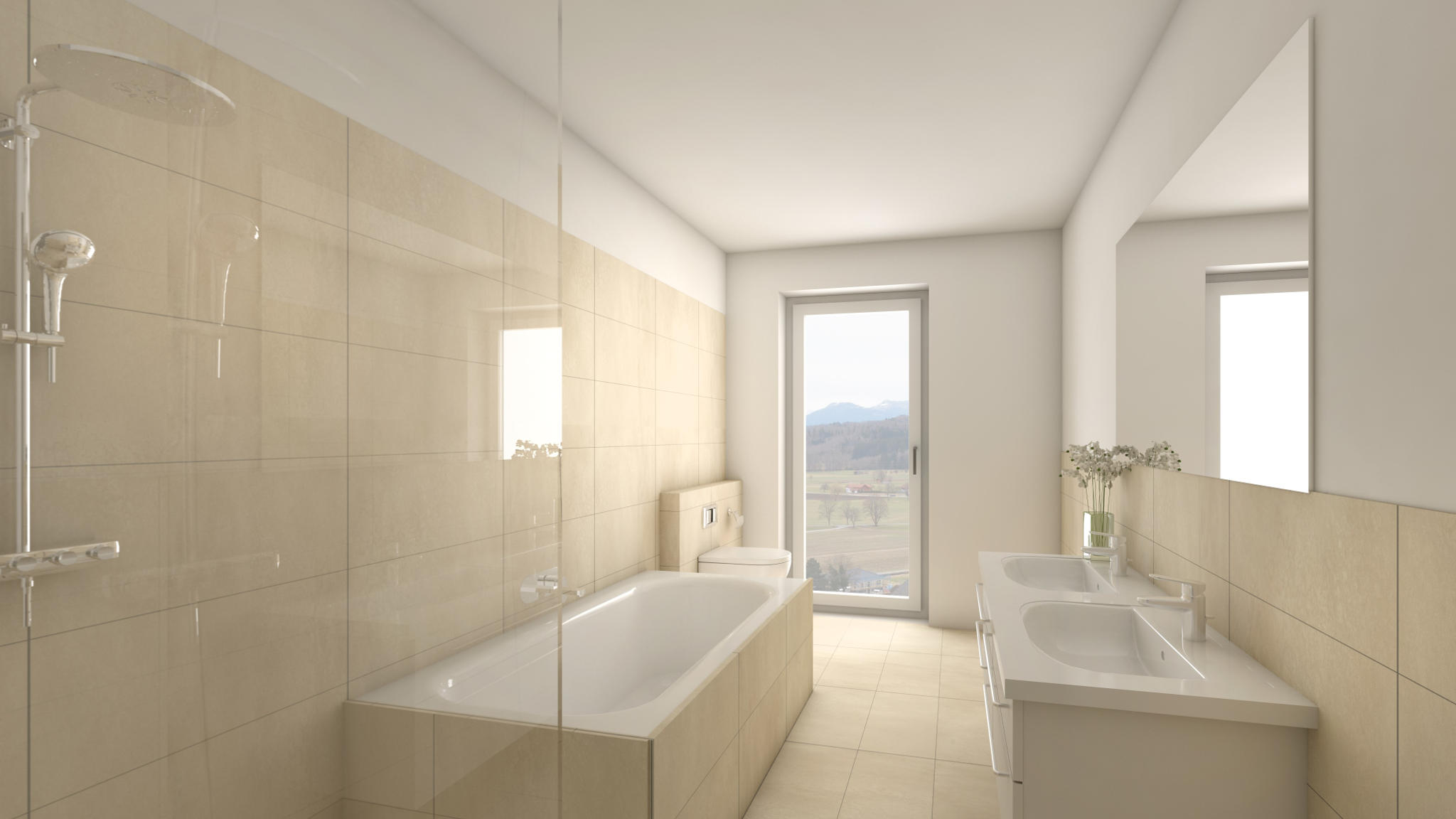 | 2 Bäder mit bodenebenen Duschen und Zweisitzer-Badewanne | |